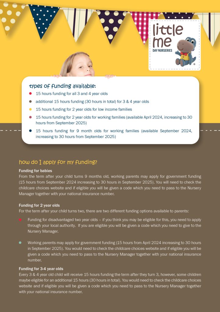 Our nurseries accept government funding, please click the document attached for further information or speak with one of our Nursery Managers for details on how to claim your free hours.